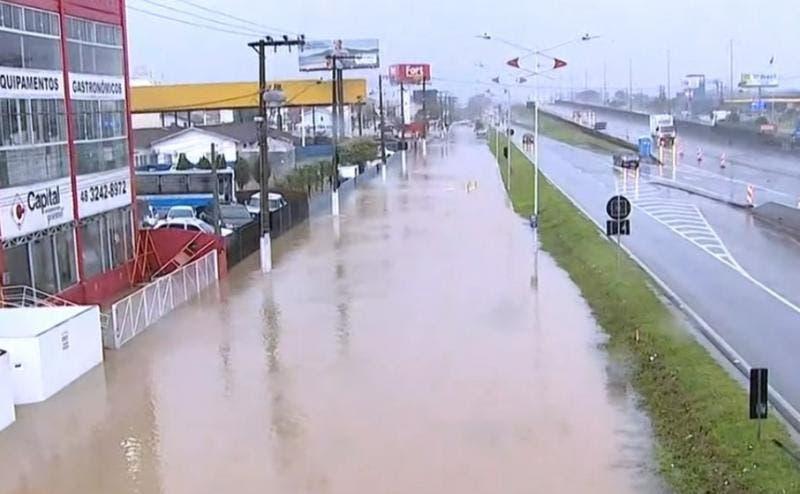 Ruas ficaram alagadas. (Foto: Rafaela Cardoso, NSC TV)