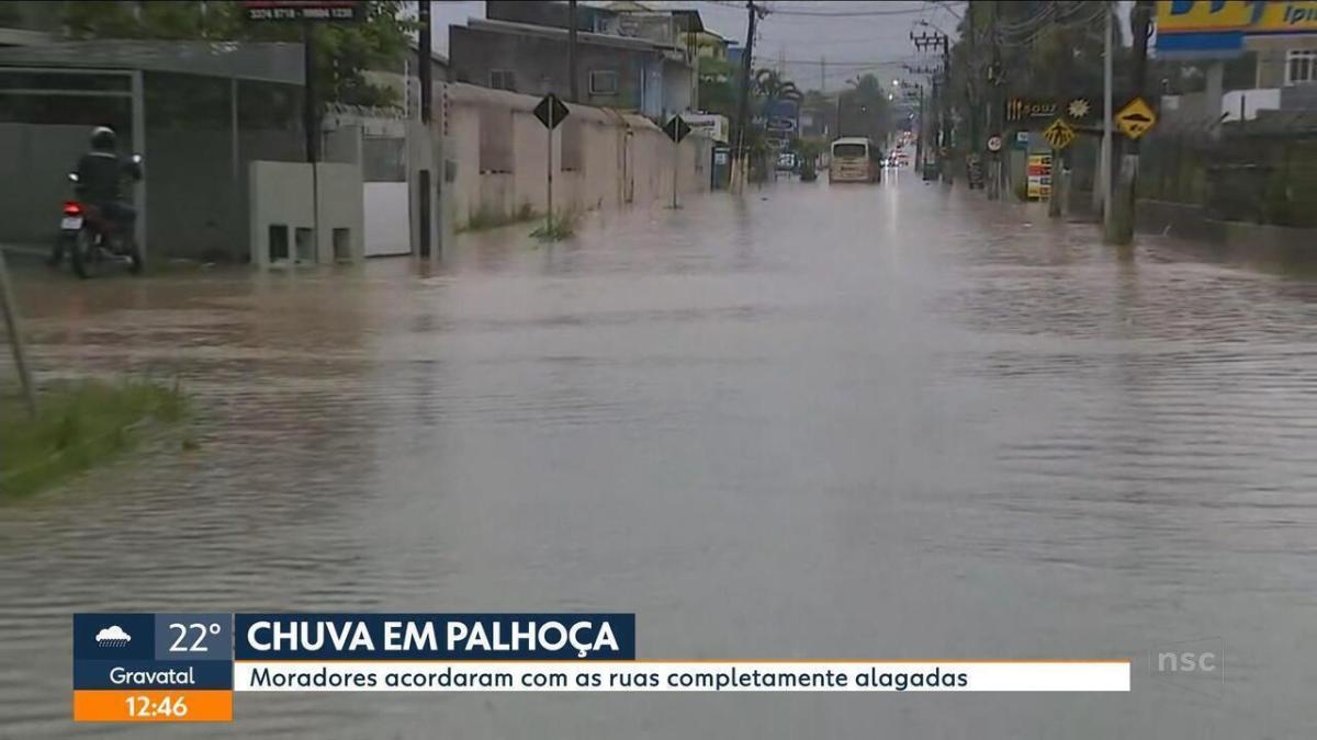 O município de Palhoça, na Grande Florianópolis, decidiu decretar situação de emergência por conta das chuvas registradas nesta terça-feira (9). A cidade teve pontos de alagamentos e três mortes após o carro em que um casal e um bebê de um ano estavam ser arrastado pela correnteza, no bairro São Sebastião.