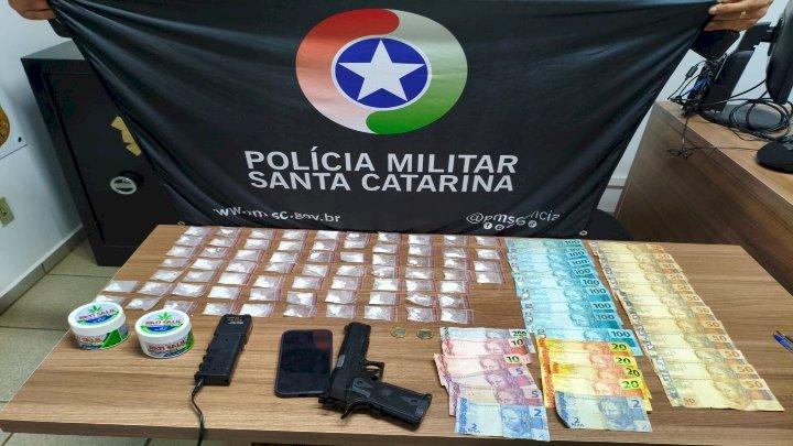 Mulher é presa com drogas e simulacro de arma de fogo em Ponte Serrada