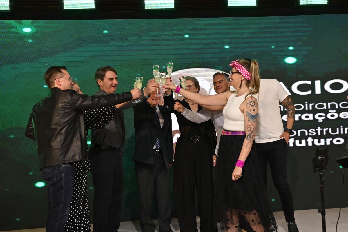 A noite de sábado (20), levou a uma verdadeira viagem no tempo, embalada pela energia contagiante dos anos 80. Com uma decoração inspirada na época, pratos selecionados, drinks exclusivos e uma trilha sonora que alternou clássicos ao vivo com a banda Trio Rosa dos Ventos e hits comandados por um DJ, a festa reuniu empresários, associados e convidados na celebração dos 85 anos da ACIOC e em comemoração ao Dia da Mulher Empresária.