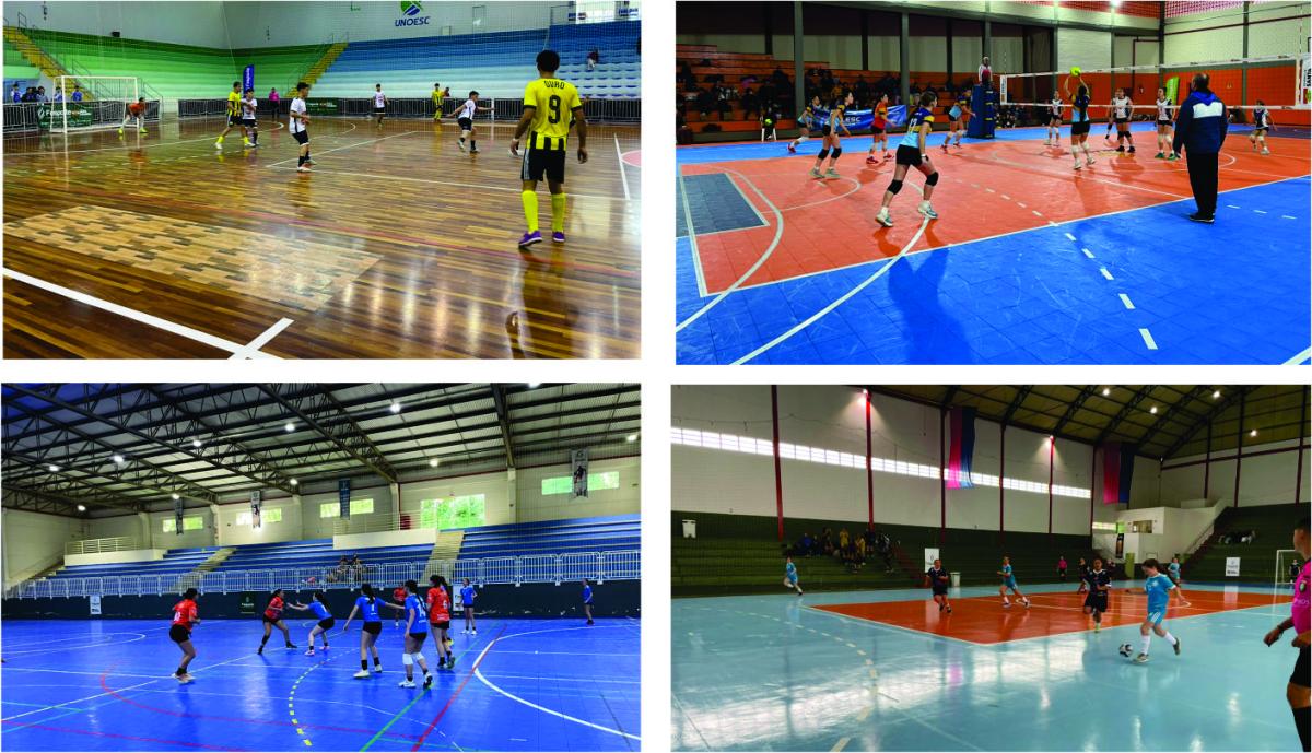 As disputas estão concentradas nas modalidades de basquetebol, futsal, handebol e voleibol, realizadas em diferentes espaços esportivos da região, como Unoesc Campos 1, Ginásio Professor Edinho do Santa Tereza, Ginásio Poliesportivo do Colégio Marista, Complexo Esportivo Oscarzão em Herval d’Oeste e o Ginásio de Esportes do Colégio Girassol.