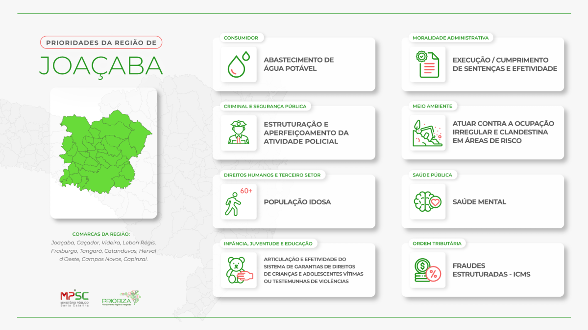 O Ministério Público de Santa Catarina (MPSC) realizou, na manhã desta sexta-feira (7/11), uma coletiva de imprensa para apresentar o diagnóstico dos principais desafios enfrentados pelas 11 macrorregiões do estado, elaborado por meio do programa Prioriza. A iniciativa mapeou as adversidades específicas de cada região e definiu as prioridades que servirão de base para a atuação da Instituição a partir de agora.