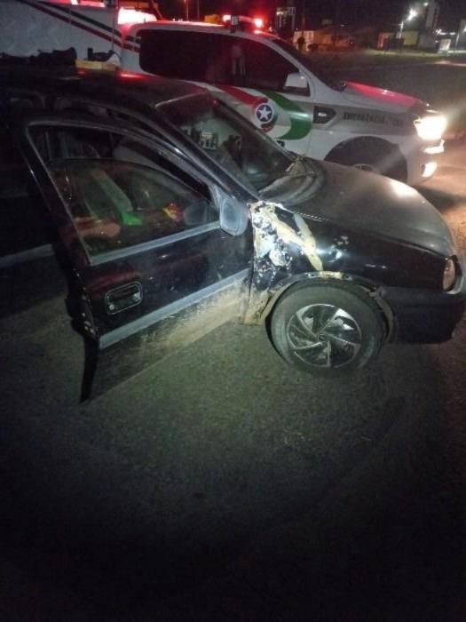 A guarnição foi acionada após informações de que um veículo furtado na cidade de Vargem Bonita estaria se deslocando em direção a Catanduvas. Diante dos dados, os policiais realizaram buscas e lograram êxito em abordar o automóvel, um I/GM CLASSIC LIFE.