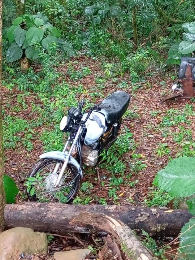 A ação ocorreu após a Polícia Militar receber informações de que um veículo estaria escondido em uma área de mata. No local, foi localizada uma motocicleta Honda/CG 125 Fan, a aproximadamente 100 metros mata adentro.