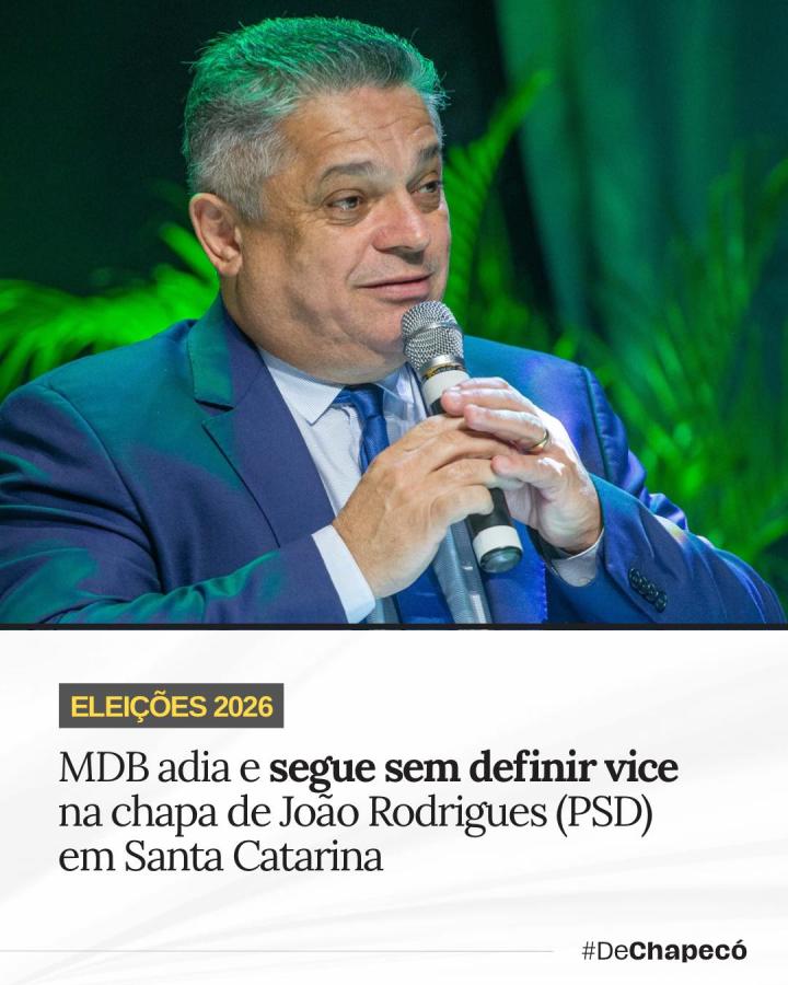 O MDB de Santa Catarina adiou mais uma vez a definição do nome para vice nas eleições de 2026. Em reunião realizada na terça (14/4/26), na Assembleia Legislativa, o partido não chegou a um consenso e encerrou o encontro sem anúncio.